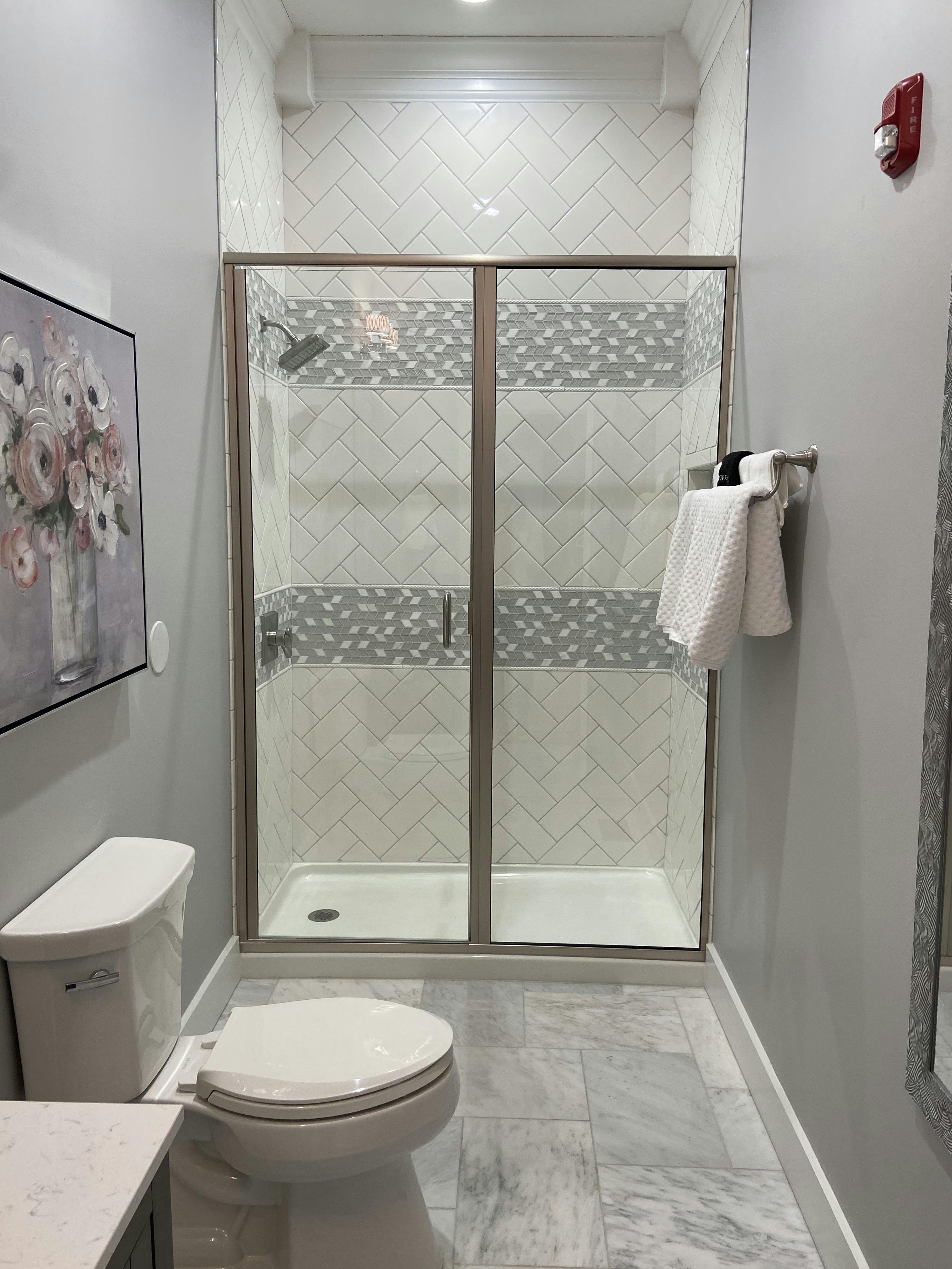The Bridal Suite dazzles with a large living room which offers several seating areas, providing ample space for you and your attendants; complete with smart TV, oversized mirror, and darling vanity for hair and makeup. In the bedroom, you will find a king size bed featuring a Simmons Beauty Rest Hybrid Luxury mattress, luxe fabrics and furnishings, and a smart TV. Our elegantly appointed bathrooms beckon you with marble, walk-in showers and upscale bath amenities.
