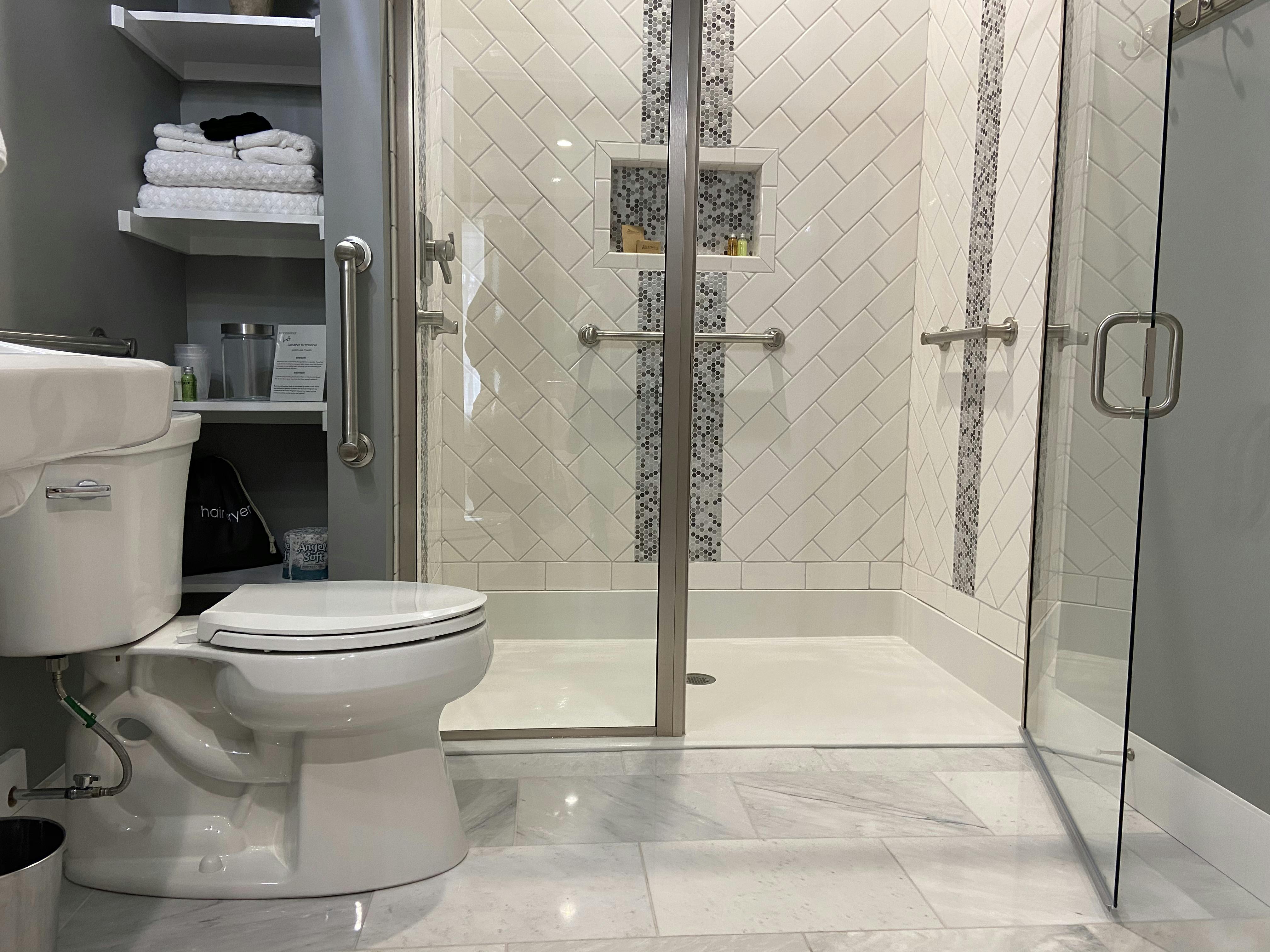 Each single suite boasts a large living room, complete with sofa, smart TV and desk, and is adorned with custom furnishings for comfortable relaxation or socializing with friends. Stretch out in the bedroom on the king size bed featuring a Simmons Beauty Rest Hybrid Luxury mattress; stream your favorite shows on the smart TV or just revive and rejuvenate. Our elegantly appointed bathrooms beckon you with marble, walk-in showers and upscale bath amenities.
